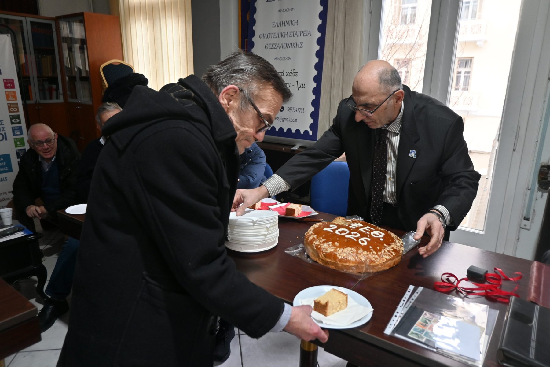 Χθες, 8 Φεβρουαρίου 2026, πραγματοποιήθηκε στο εντευκτήριο της Ελληνικής Φιλοτελικής Εταιρείας Θεσσαλονίκης η παραδοσιακή κοπή της βασιλόπιτας.